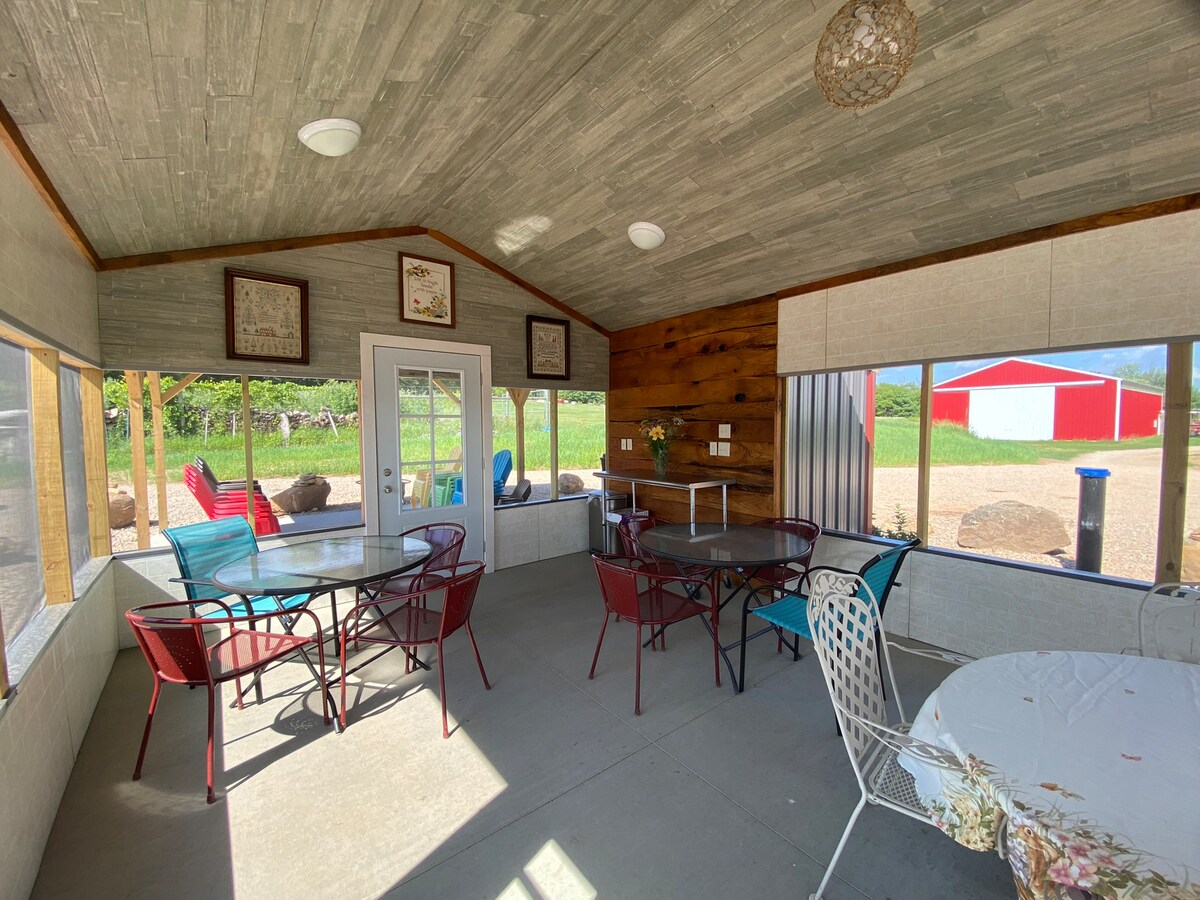 Nous sommes situés juste à l'extérieur de la ville avec un accès facile à tout ce que la belle région de Waupaca a à offrir. À seulement 10 minutes de la Chaîne ! La propriété est entourée d'une forêt mature d'érables et de chênes, mais dispose d'une prairie ouverte parfaite pour les pique-niques et l'observation des étoiles. C'est beau ici ; vous pouvez vous reposer et vous ressourcer au plus près de la nature. Adventure Outpost est entièrement rénové et conçu pour votre confort et votre commodité. L'espace est confortable, lumineux et rafraîchissant et assez grand pour toute la famille !