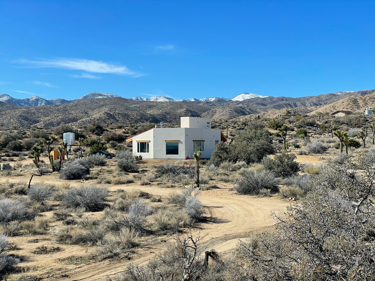 *8 acres de désert privé *Plus de 6 000 acres de randonnée à l'extérieur de la porte d'entrée * Chargeur Tesla (apportez l'adaptateur nécessaire) *Starlink Internet *Bain à remous * Robes de spa * Foyer au propane * Barbecue au propane * Douche extérieure. *Belle vue imprenable * Système de filtration d'eau pour toute la maison *Cuisine entièrement équipée *11 minutes ➔ Pappy & Harriet 's *15 minutes ➔ La Copine *20 minutes ➔ Integratron *25 minutes Parc national ➔ de JT *45 minutes ➔ DT Palm Springs
