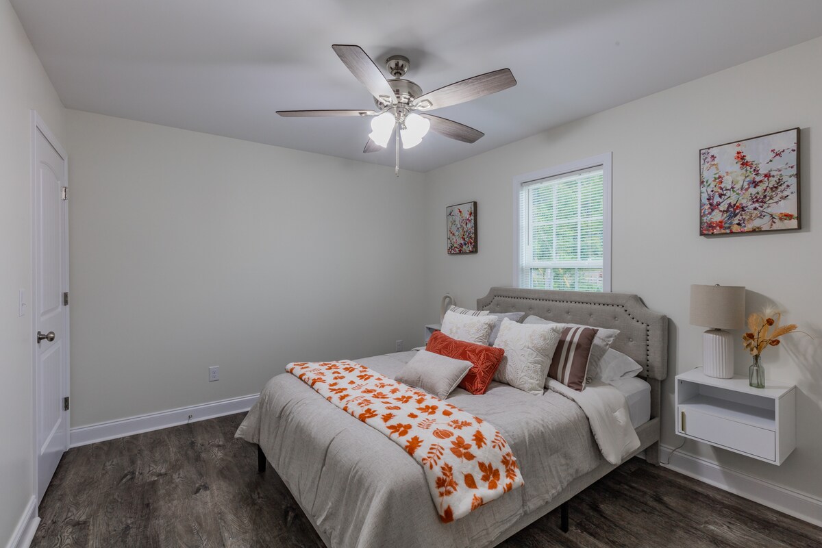 Bienvenue à Country Green - une résidence lumineuse et aérée située dans la paisible vallée rurale de Cherokee. La maison est à peu près à mi-chemin entre l'historique Ringgold et Collegedale/SAU/Apison. Nous pouvons accueillir 6 personnes, mais cela peut être étendu à 8 avec l'utilisation d'un grand pouf qui se transforme en matelas queen size. La maison dispose de 4 grands téléviseurs ROKU et d'une connexion Wi-Fi par fibre optique avec une vitesse de 500. Les hôtes vivent à environ 400 pieds de Country Green si vous avez des questions ou des besoins.