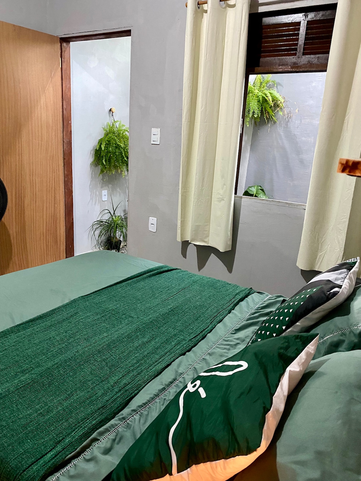 Appartement à 5 minutes de la plage. Commerces à proximité (supermarchés, boulangerie, pharmacie, snack-bar) et transports en commun à la porte. L'espace dispose d'une connexion Wi-Fi, d'un accès à Netflix et autres, d'une télévision intelligente, d'un ventilateur de plafond, d'un ventilateur supplémentaire, d'un lit double, d'un matelas supplémentaire, d'oreillers, de draps et de serviettes. Cuisine avec réfrigérateur, cuisinière, micro-ondes, sandwicherie et tous les ustensiles. Salle de bain complète. Espace de service avec réservoir, corde à linge et matériel de nettoyage. Espace social avec table et barbecue.