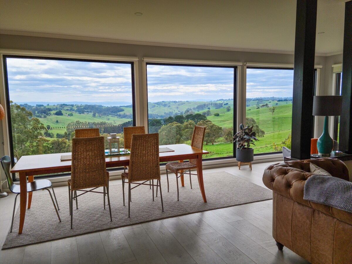 Retraite spacieuse et privée, campagne calme avec une vue magnifique. Le Bnb fait partie de la maison principale mais est entièrement privé et indépendant. L'hébergement se compose d'une chambre queen size. Avec salon accessible par la salle de bain attenante. NBN et Wi-Fi. Kitchenette avec réfrigérateur, micro-ondes, etc. Petit déjeuner continental généreux fourni. Jardin de campagne et accès à la terrasse arrière avec petit barbecue - bel endroit pour boire un verre et méditer. Remarque : PAS D'ANIMAUX DE COMPAGNIE.