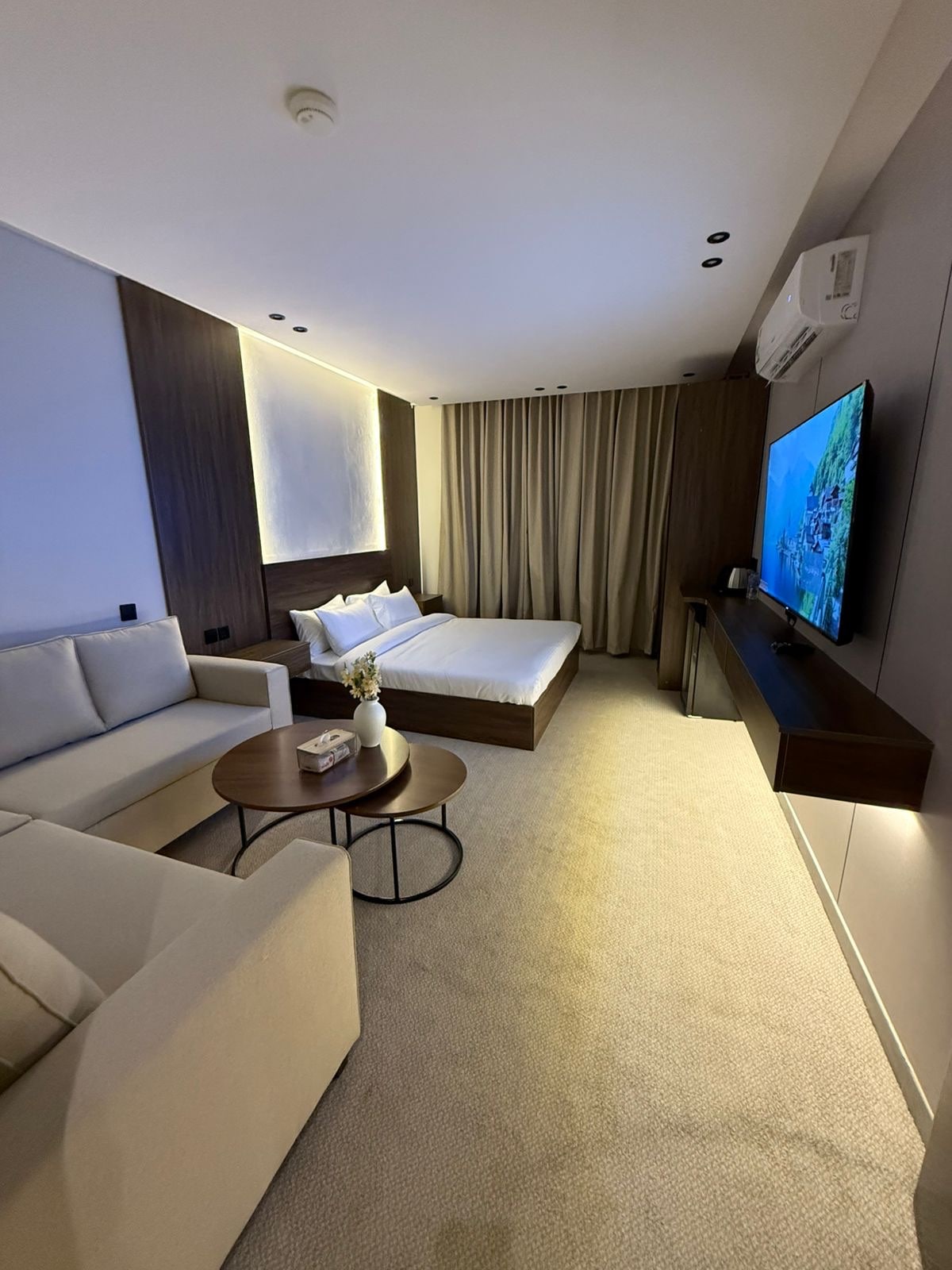 Studio de luxe Hadi Hotel dans le quartier de Yarmouk près de l'aéroport international King Khalid près de Dammam Road, services et centres commerciaux avec un supermarché et une blanchisserie avec un écran de télévision de 70 pouces, un abonnement Netflix et une connexion Internet avec une cuisine et une salle de bain avec tous les besoins.
