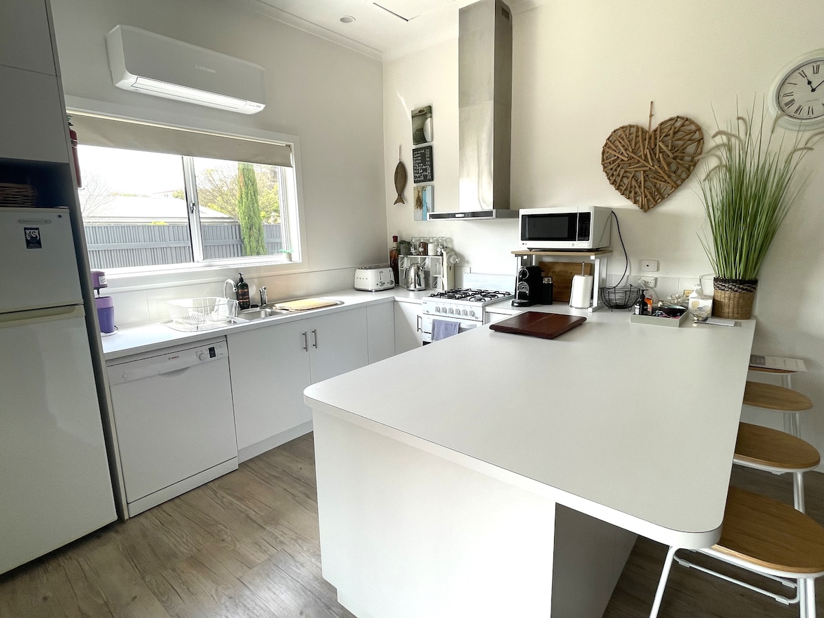 Ce chalet en pierres jumelé récemment restauré dans le hameau paisible et légèrement vallonné de Rendelsham offre isolement et intimité, avec vue sur le jardin et vie à l'extérieur. Allée et parking privés. Courte distance en voiture des plages locales, du lac Macintyre et de la gare de Mayura. À 45 minutes des vignobles de Coonawarra et à distance de marche du parc national de Canunda. Millicent à proximité offre une sélection de restaurants, cafés, supermarchés, pharmacies, un lac de baignade et un hôpital. Poêle à bois pour le temps frais.
