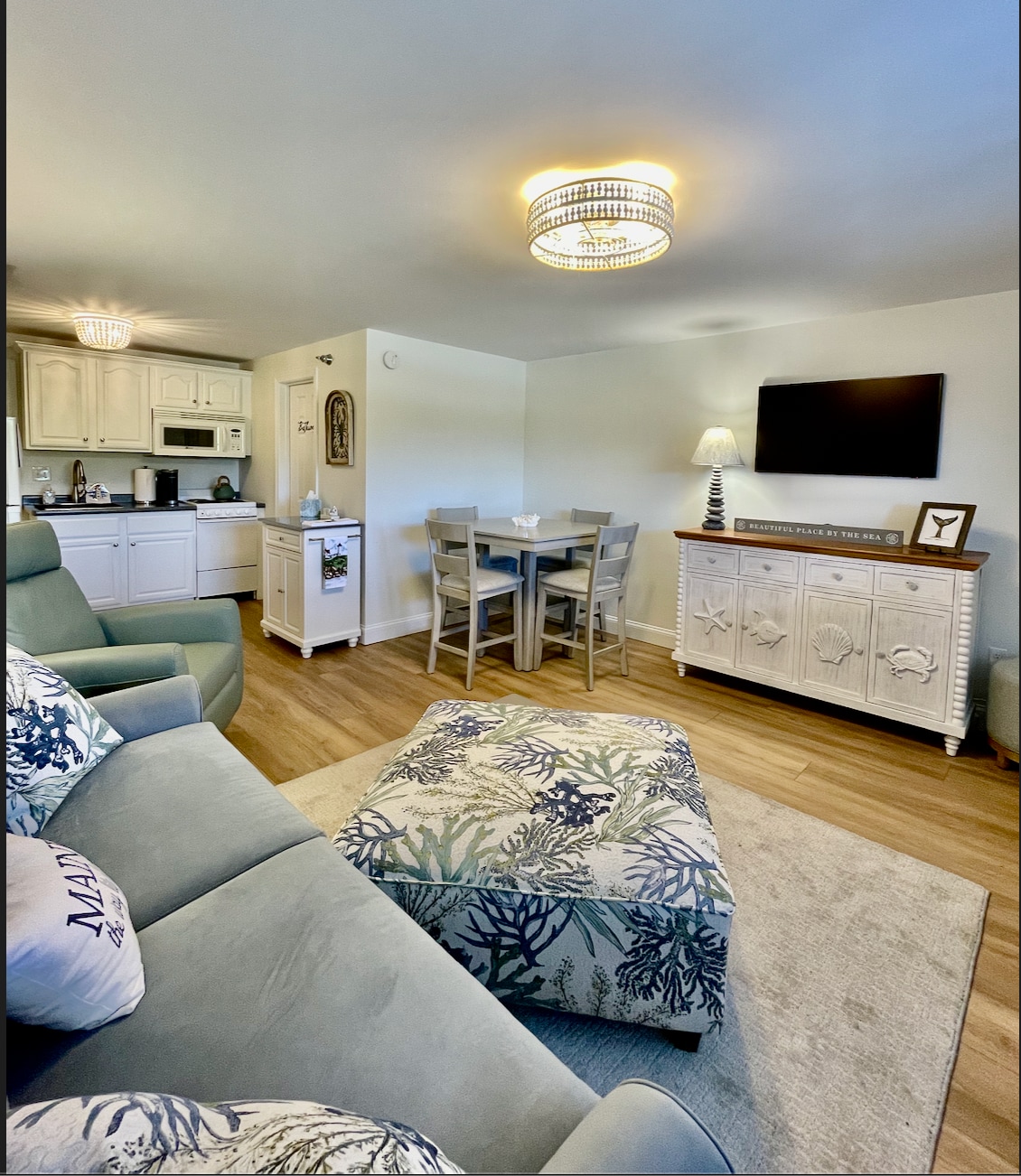 FRAÎCHEMENT RÉNOVÉ ET AU CŒUR DE LA PLAGE DE HAMPTON ! À pieds en face de la plage principale et situé à seulement quelques pas de toute l'excitation. Piscine couverte et chauffée. Appartement meublé et entièrement équipé avec machine à café Keurig, grille-pain, réfrigérateur et micro-ondes. Unité orientée Pâques, afin que vous puissiez entendre le rugissement de l'océan Atlantique et profiter de la brise de l'océan ! Pas besoin de café du matin car nous fournissons du café, du thé, du sucre et de la crème pendant votre séjour. Wi-Fi, câble, chromecast et smart TV. Parking pour 1 voiture inclus.