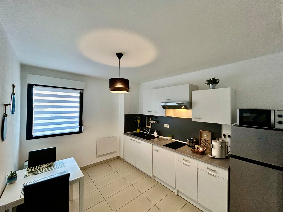 Cet appartement séduit par son espace de vie ouvert avec un salon confortable et sa grande cuisine moderne, le tout décoré et pensé pour garantir un maximum de sérénité. Une salle de bain splendide ainsi que 2 chambres spacieuses avec dressing viennent compléter ce lieu de vie plein d'espace. Une résidence parfaite pour un style de vie élégant. TV HD, chaines du câble & VOD, connexion haut débit Proche supermarché et autres commodités 20 mn de Thionville 20 mn de Metz 30 mn de Luxembourg