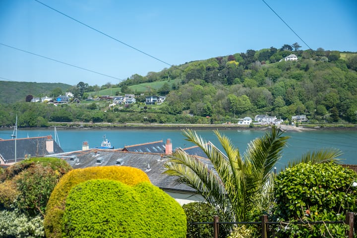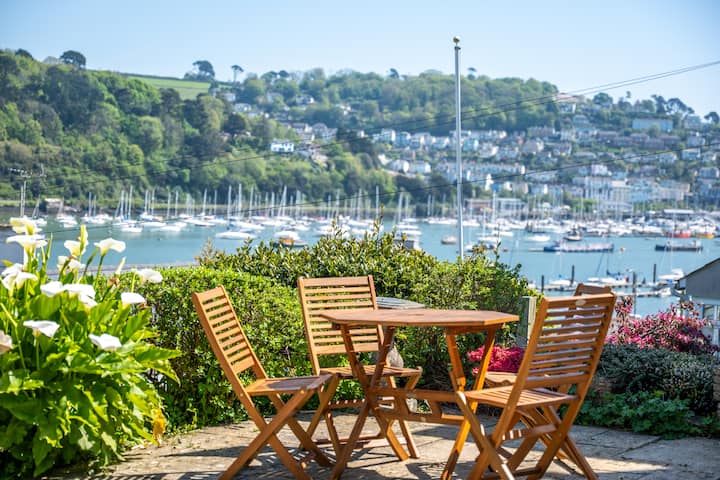 Les invités peuvent profiter de plusieurs espaces extérieurs, y compris des patios avant supérieur et inférieur donnant sur la rivière, le patio inférieur étant situé au-dessus du grand garage de la propriété. De là, vous êtes parfaitement placé pour explorer les restaurants primés de Dartmouth, les boutiques, les promenades pittoresques au bord de la rivière et les plages voisines le long de la côte du sud du Devon.