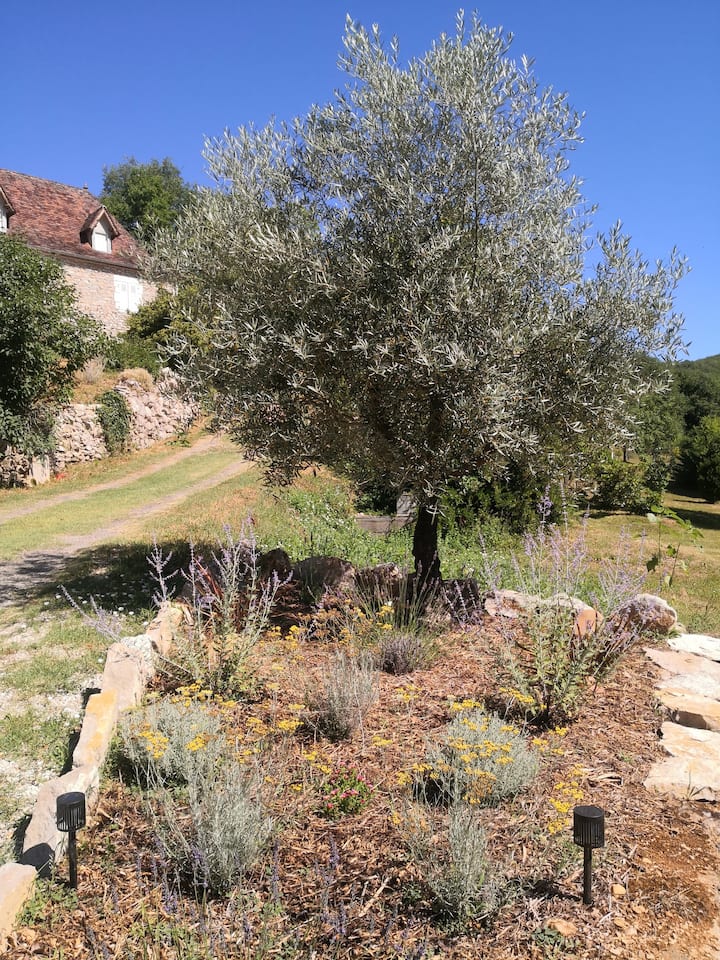 Notre charmante suite se situe dans un cadre champêtre de la vallée du Lot, à 2 minutes de l'un des plus beaux villages de France, Saint-Cirq-Lapopie et à 35 minutes de Cahors. Elle est aménagée avec soin pour votre confort. Vous apprécierez le calme de ses espaces extérieurs entourés de verdure. En option, vous pourrez profiter d'un bain nordique chauffé pour des soirées à contempler la voie lactée. Rivières, patrimoine , loisirs, terroir et sports, tout pour un agréable séjour dans le Lot !