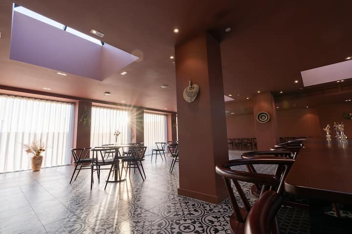 Chacune de nos chambres de style studio a été soigneusement conçue comme un havre de paix privé pour compléter nos nombreux espaces partagés. Ils ont été conçus autour des éléments de la terre, de l'air, du feu et de l'eau. Doté de tapis écologiques fabriqués à partir de bouteilles recyclées, de têtes de lit en tissu, de meubles en chêne et de couleurs apaisantes selon leur thème élémentaire.