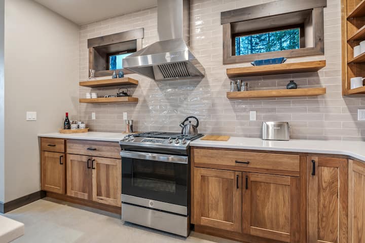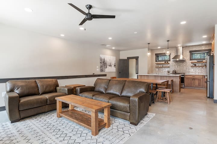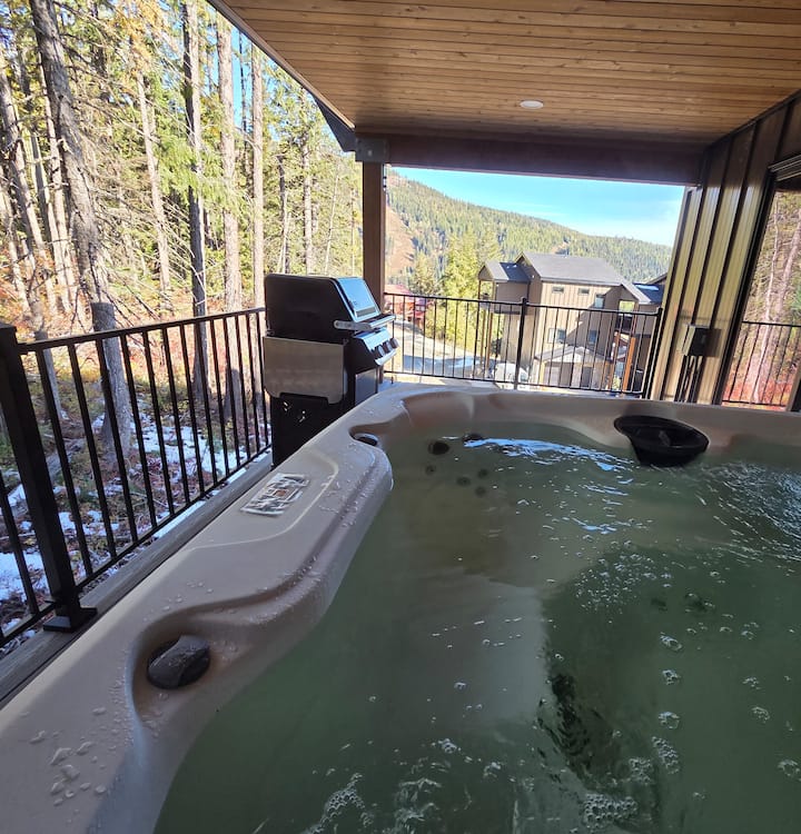 Jacuzzi privé, sauna, vue sur la montagne, 1/2 mile de remontée, navette gratuite, nouvelle construction - maison moderne, 3 chambres avec salles de bains privatives, cuisine de chefs, barbecue au gaz, Internet haut débit, sols en béton chauffé pour un séjour propre et confortable. Plusieurs logements disponibles sur le même site !