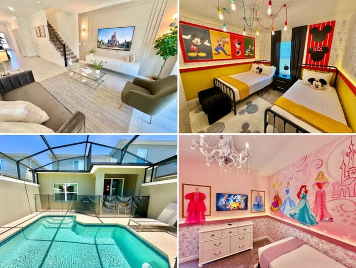 Cette superbe maison est située dans l'un des resorts les plus prisés de la ville, à seulement 15 minutes de Disney et avec un accès facile à Universal. Avec 3 chambres élégantes pour adultes et 2 chambres magiques sur le thème de Disney conçues pour ravir les enfants, cette maison est parfaite pour les familles de toutes tailles.