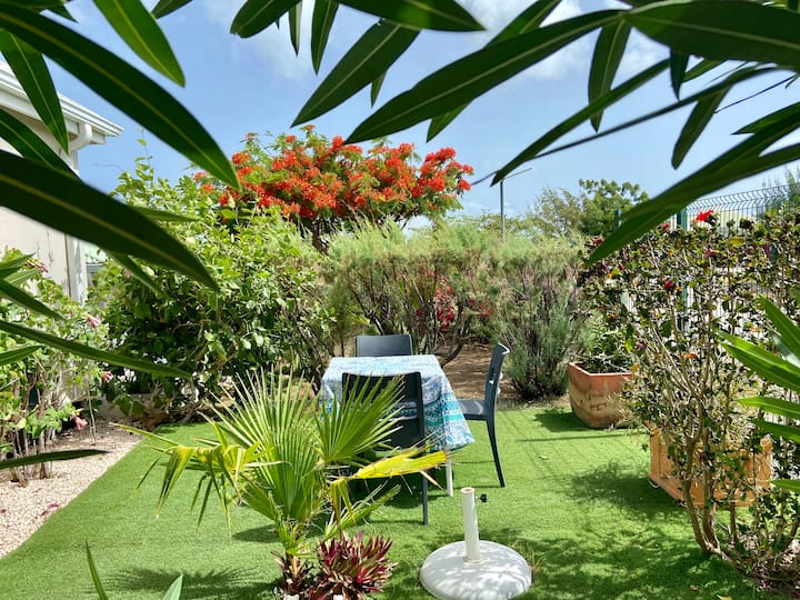 Studio « ALAMANDA » confortable, jardin tropical/plage à pied
