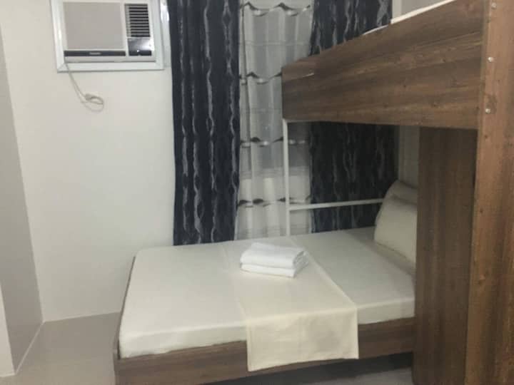 *Mon espace privé est un studio de 22 m ². Il est entièrement meublé avec Internet haut débit, ustensiles de cuisine, table à manger, réfrigérateur, four à micro-ondes et une télévision (avec télévision ABSCBN plus pour une réception claire et netflix), 1 lit double et 1 lit simple avec une armoire spacieuse. Le loyer comprend déjà tous les services publics et tous les frais, à l'EXCEPTION de l'utilisation de la piscine (aucun DÉPÔT/AUTRES FRAIS REQUIS). Il est idéal pour les séjours, les vacances ou les étudiants qui recherchent la sophistication et la vie haut de gamme dans la ville.*