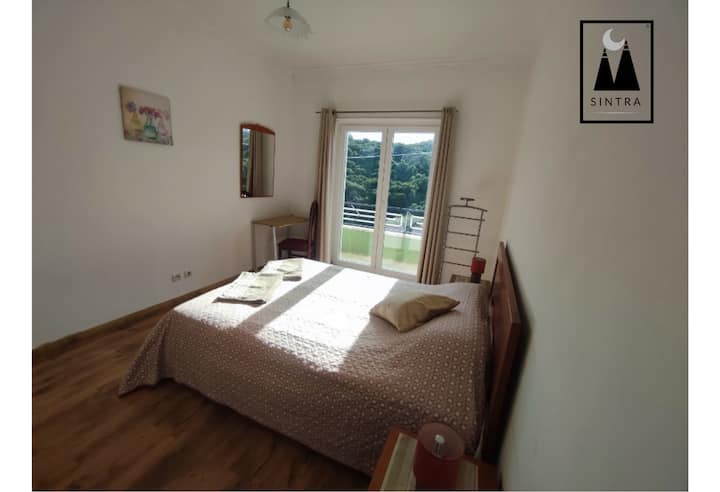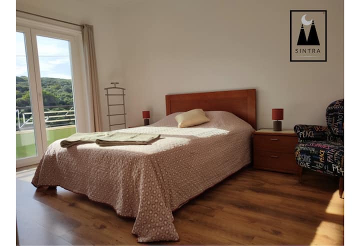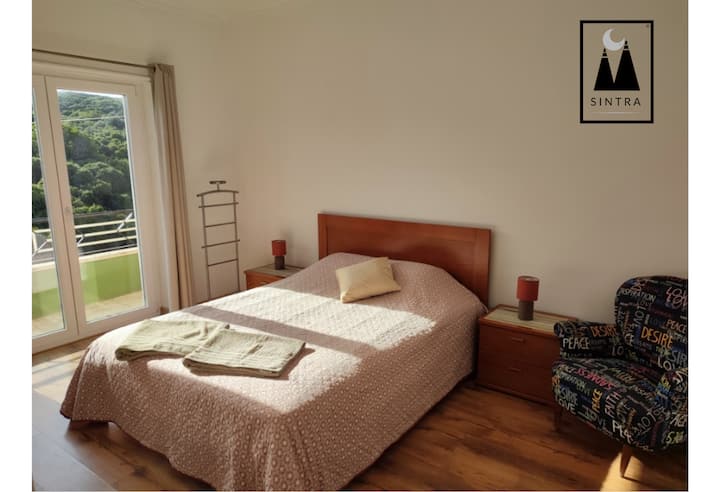 Chambre double située au sommet de la colline à l'entrée de la ville de Sintra. À seulement 10 minutes de marche du centre historique de Sintra et des principaux sites touristiques. Vous avez accès à une salle de bain et une cuisine partagées entièrement équipées.