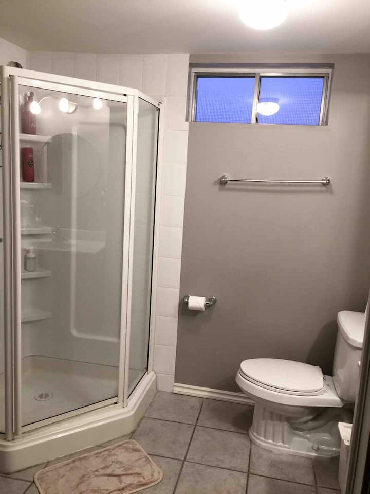 Cette chambre privée confortable au sous-sol est parfaite pour les clients à la recherche d'un bon repos nocturne dans un lit confortable avec une salle de bain non partagée près de la buanderie (pas dans la suite). Une cuisine est partagée avec d'autres voyageurs. Le quartier est calme et sûr.