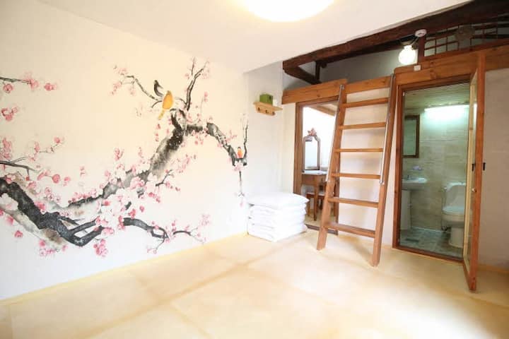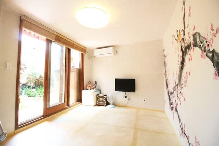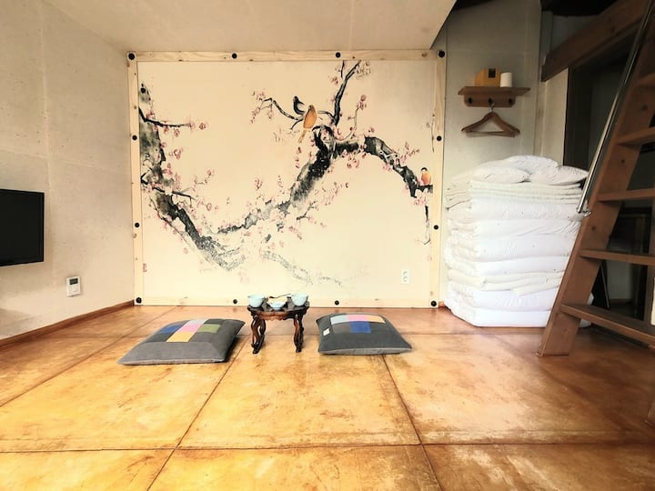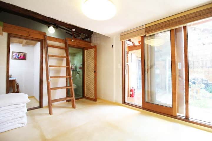 Le paysage sonore est un beau hanok qui a remodelé une maison de 110 ans, et vous pouvez sentir l'atmosphère tranquille d'un hanok traditionnel assis sur le sol d'une cour de hanok remplie de l'odeur de la saleté.