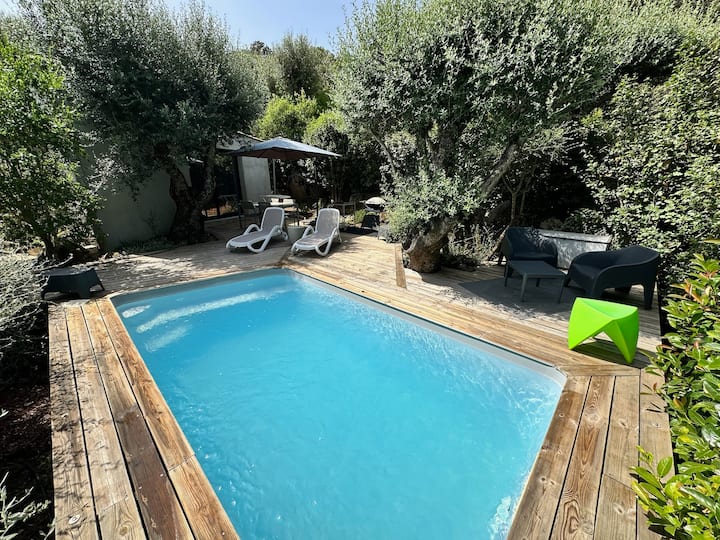 Maison unique 2 Pers, piscine, prox ville / mer