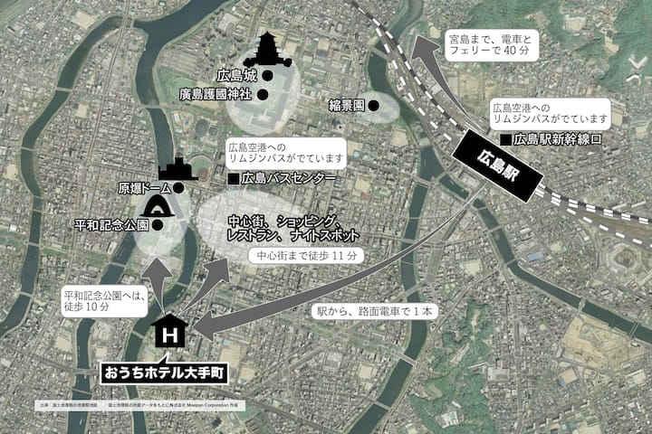 Je gère plusieurs propriétés au cœur de la ville d'Hiroshima avec un excellent accès aux principales attractions, notamment les sites du patrimoine mondial, le Dôme de la bombe Atomic (Peace Memorial Park) et le sanctuaire d'Itsukushima, connu pour la grande porte flottante des torii.