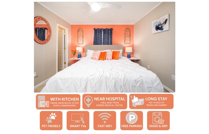 Près de Cleco et de l'hôpital | avec bureau | TV 55" | King 🛏