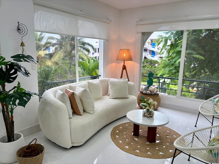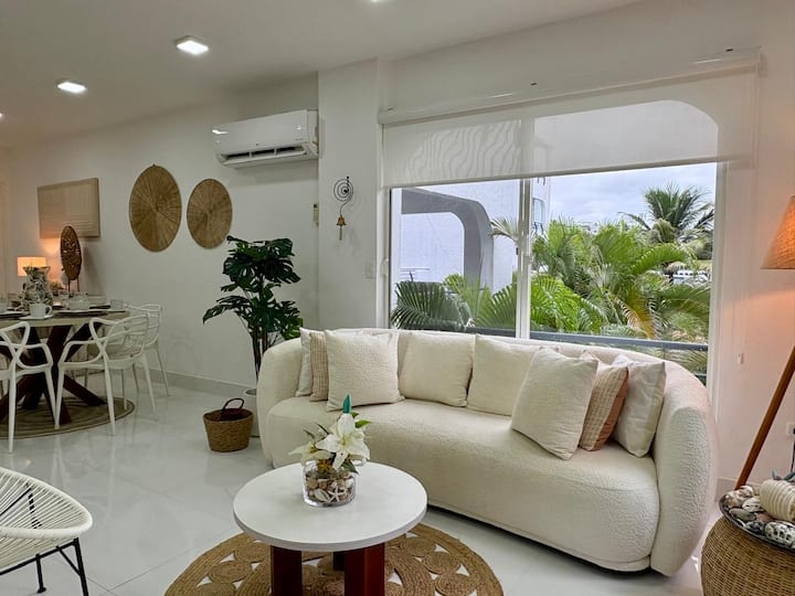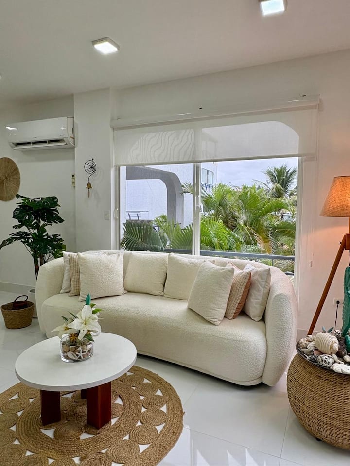 Bienvenue dans l'appartement confortable qui sera votre maison loin de chez vous ! Situé dans un environnement résidentiel calme à seulement 300 mètres de la plage, cet hébergement est parfait pour des vacances reposantes et confortables. Pouvant accueillir 4 personnes dans deux chambres, situé au deuxième étage, sa décoration tropicale-moderne crée l'environnement idéal pour en profiter au maximum.
