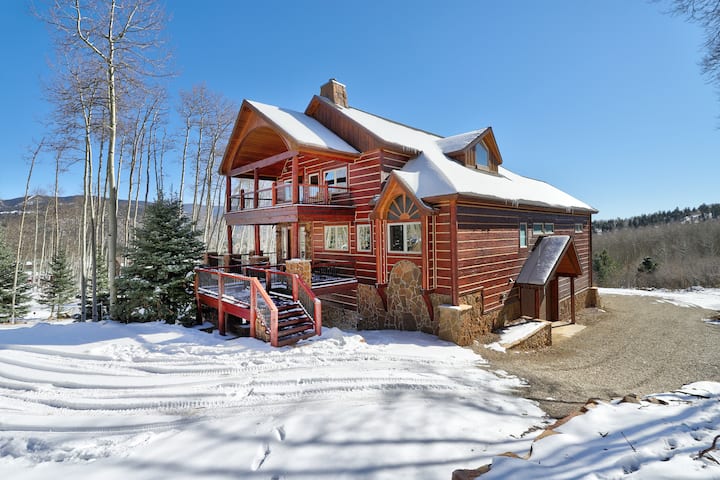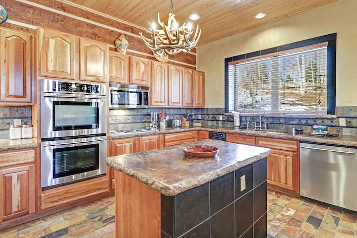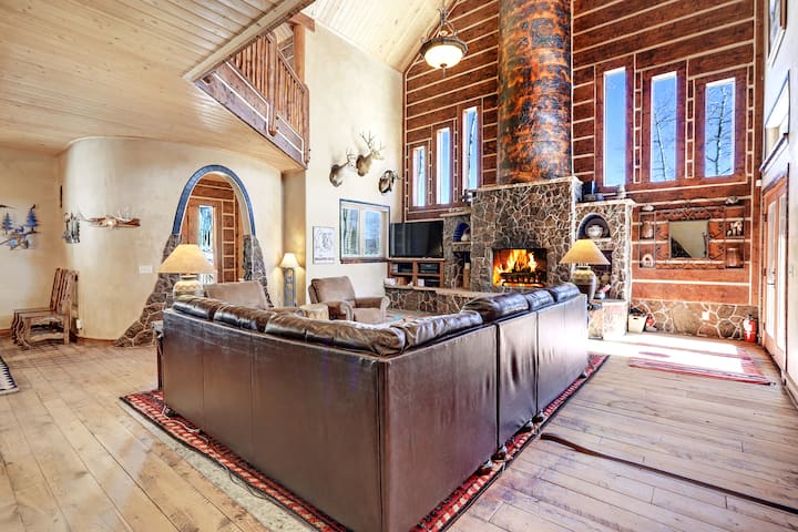 La villa Angel Fire a été construite en 2007 et est entrée dans la Parade of Homes la même année par le constructeur de maisons sur mesure, Blue Ray Homes. La maison a remporté le prix Best Interior, Best Exterior et le très convoité Grand Hacienda pour les logements d'une valeur de plus de 750000 $ . Ce logement est vraiment unique avec de nombreuses touches artisanales distinctives. Les voyageurs apprécieront l'emplacement pratique du côté Country Club d'Angel Fire Village ; à seulement 4 miles (10 minutes en voiture) de toutes les activités de montagne et à 7 minutes en voiture de l'Angel Fire Country Club. Le logement a trois niveaux. Entrez sur le rez-de-chaussée où vous êtes accueilli avec un grand plan d'étage à aire ouverte : salle à manger et cuisine sont tous dans un seul espace. Toute la bande peut se réunir dans la salle familiale à côté de la grande cheminée à bois en pierre de 12 pieds de haut pour profiter d'une soirée cinéma et d'un cacao chaud. Le chef de votre groupe tombera en amour avec la cuisine gastronomique. La cuisine bien aménagée offre tout ce dont vous avez besoin pour préparer vos repas préférés en famille. Tout a meilleur goût dans les montagnes ! Il y a également beaucoup d'espace pour profiter des repas ensemble, une table à manger pouvant accueillir huit et huit personnes de plus au comptoir de la cuisine et à la table de canapé. Il y a un demi bain hors de la chambre familiale. Tout le monde adorera la vue imprenable depuis la terrasse : les montagnes, la faune et les trembles, oh mon dieu ! Plongez dans le jacuzzi couvert * pour vous détendre après une longue journée de plaisir en montagne. En outre, sur la terrasse se trouve un barbecue au propane avec une plaque de cuisson Blackstone afin que vous puissiez profiter d'excellents repas barbecue et de l'air frais des montagnes. La terrasse est accessible à partir de la grande salle familiale et de la chambre principale avec des sièges de table pour seize personnes. La chambre principale, la « Texas Suite », dispose d'un lit king-size et d'un coin salon. La luxueuse salle de bains privative dispose d'une baignoire à jets et d'une douche à vapeur. Il y a cinq chambres, chacune disposant d'une salle de bain privée. Le loft (le Hay Loft) est un espace de couchage supplémentaire avec un canapé-lit queen size et sa propre terrasse extérieure avec de belles vues. Le niveau inférieur dispose d'un espace game room avec table de billard et salle de bain privée. Pour ceux qui doivent travailler ici, nous avons installé deux moniteurs qui relient un connecteur de type C sur presque tous les ordinateurs portables. Une imprimante Wi-Fi laserJet multifonction HP, une photocopieuse et un scanner se sont également ajoutés. Il vous suffit de connecter votre ordinateur portable aux moniteurs et d'utiliser l'Internet à fibre optique 6G.