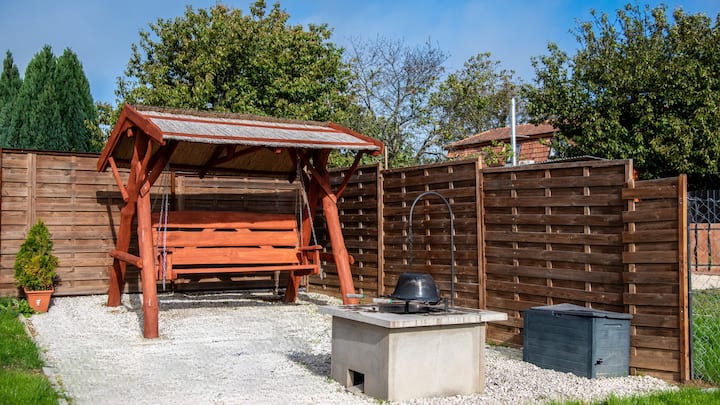 Une cachette confortable parfaite ! Situé à Rezi, MBL Apartments Hévíz Spring dispose d'un jardin privé, d'un bain à remous au feu de bois (en supplément par nuit) et de meubles de jardin au bord de la forêt, avec de belles vues sur les bois et les champs. L'appartement offre des possibilités fantastiques de randonnée, de pêche, de natation et de dégustation de vin à proximité. Hévíz et Keszthely sont à seulement 3,7 mi. Détendez-vous dans cette retraite unique et tranquille, où vous pourrez méditer, vous prélasser dans le bonheur et vous détendre dans les loisirs.