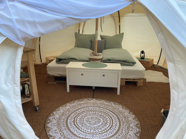 Les coordonnées de l'emplacement vous seront communiquées après la réservation. Depuis le parking, il y a environ 400 m à pied à travers une prairie jusqu'à la tente. S'il vous plaît, ne conduisez pas la voiture jusqu'à la tente.