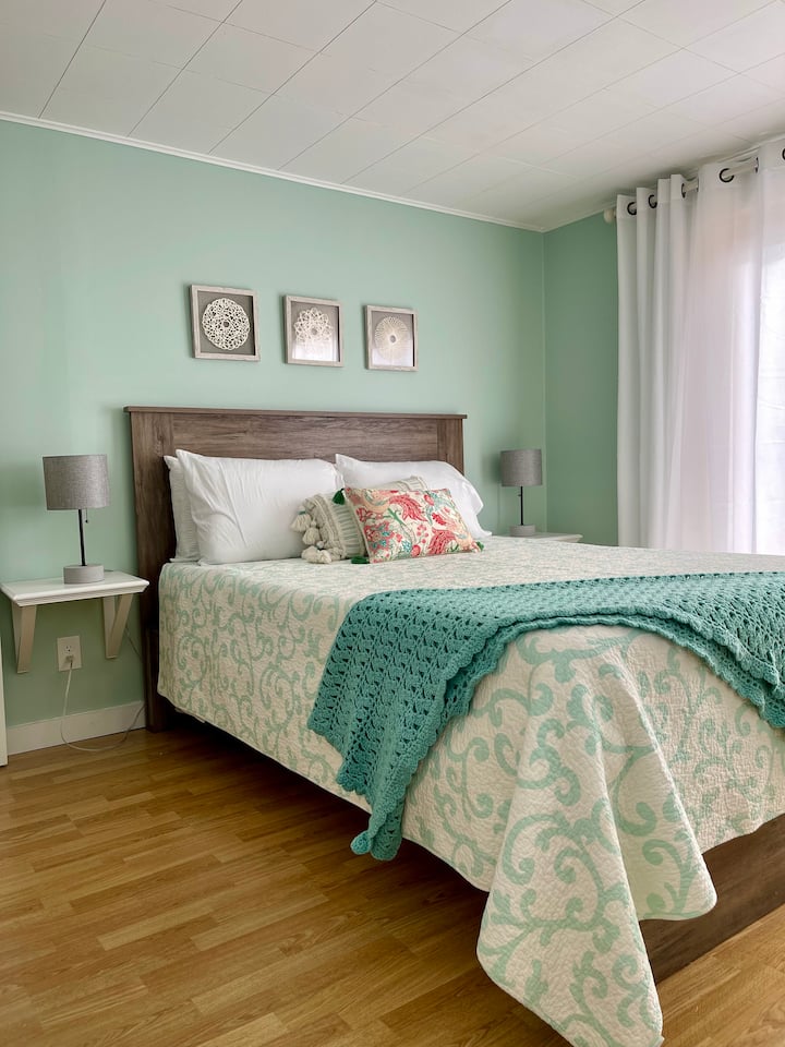 Nous offrons un matelas en mousse à mémoire de forme Nectar Queen Size avec une variété d'oreillers et de couvertures dans la chambre principale où vous pourrez dormir au son des marées. Le lever du soleil d'été vous invitera à vous lever tôt et à profiter de la faune, des bateaux de homard, du chant des oiseaux et plus encore. Promenez-vous sur le chemin de terre sans issue pour trouver des champs colorés, un vieux cimetière mystérieux et des arbres imposants avec des nids pour les aigles et les balbuzards. Prenez la route sur un demi-mille pour regarder les bateaux lancer ou apportez votre propre kayak/SUP pour sortir sur la baie de Gouldsboro, généralement calme. Conduisez sur la péninsule Schoodic dans le parc national d'Acadia entre le lever et le coucher du soleil, à moins de 30 minutes. Louez des kayaks, des vélos ou faites appel à un guide agréé du Maine pour vous emmener dans les confins de ce paysage accidenté.