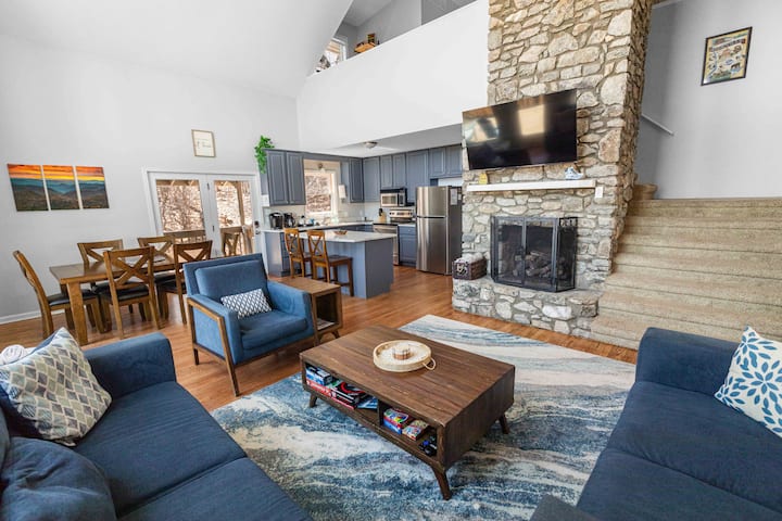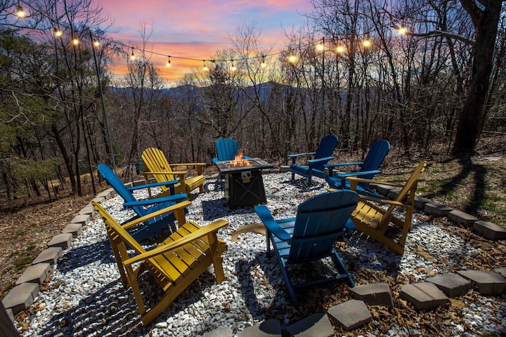 Nichée dans les magnifiques montagnes près d'Asheville… évadez-vous dans une retraite isolée magique de 4 chambres avec vue sur les montagnes à longue portée enveloppée dans le charme de la nature, mais à seulement 15 miles du centre-ville. Profitez de la vue depuis le jacuzzi ou d'un bon livre depuis le coin lecture confortable. Jouez au ping-pong, au baby-foot ou aux fléchettes. Des s'mores ? Ne manquez pas le foyer ! Profitez de l'immensité du ciel sous la voûte des étoiles ; si vous avez de la chance, vous pourrez voir une pluie de météores.