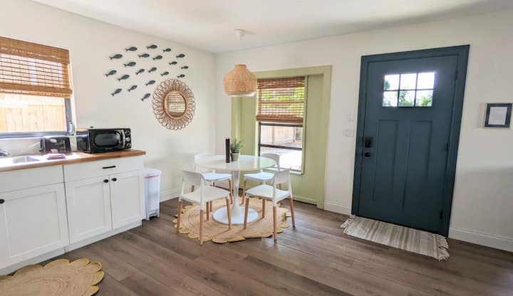 Cet appartement est exactement ce dont vous avez besoin pour des vacances amusantes et inspirantes sous le soleil de la Floride ! Une propreté étincelante avec des couleurs vives, un mobilier confortable, un lit king-size confortable, une cuisine entièrement équipée et des touches spéciales de style ancien de Floride vous donneront le sentiment d'hospitalité du sud que vous recherchez. Au centre de Sarasota, vous pouvez vous rendre de l'île de Siesta Key en moins de 10 minutes ! Que vous soyez ici pour les affaires ou pour le plaisir, cet appartement funky et amusant sera un point culminant.