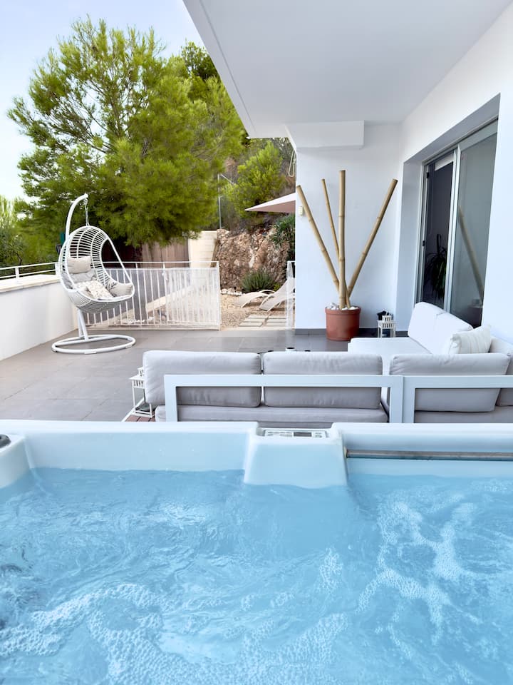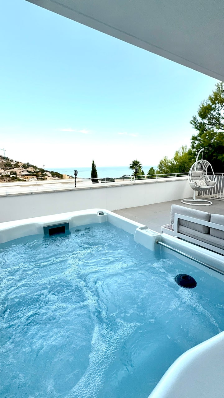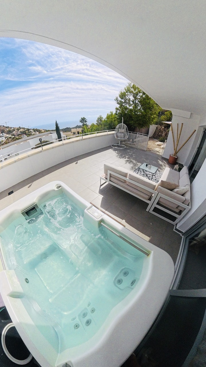 Casa del Sol. Jacuzzi et vue sur la mer à Altea.