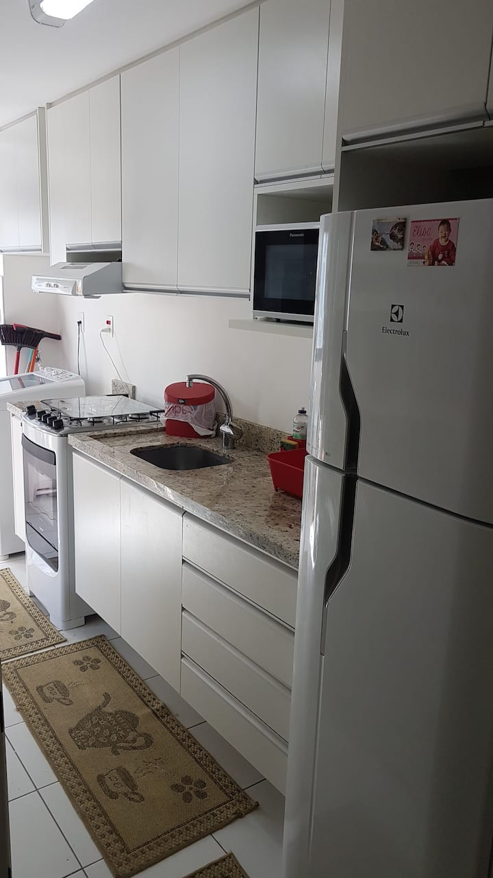 Espace avec mobilier planifié et entièrement équipé (ustensiles ménagers, vaisselle, couverts, cafetière, machine à sandwich, mixeur, fer à repasser, sèche-cheveux et articles de lit et de bain). Salle de bain avec boîte blindex, cuisine avec réfrigérateur sans gel, cuisinière/cuisinière à gaz et four à micro-ondes, plan de travail en granit.