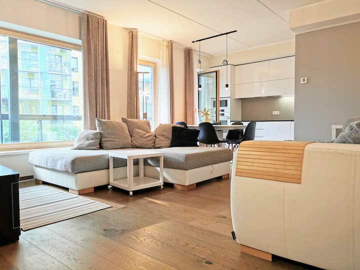 Appartement moderne de 4 pièces, balcon, central, parking gratuit