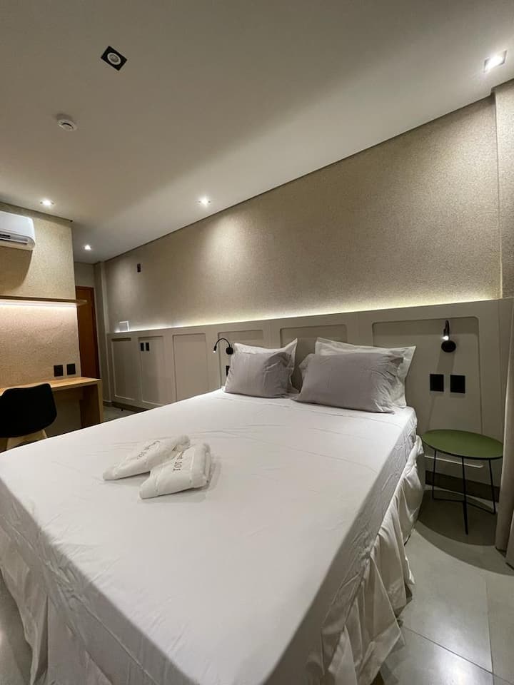 Une chambre avec wifi, bien aménagée pour travailler.