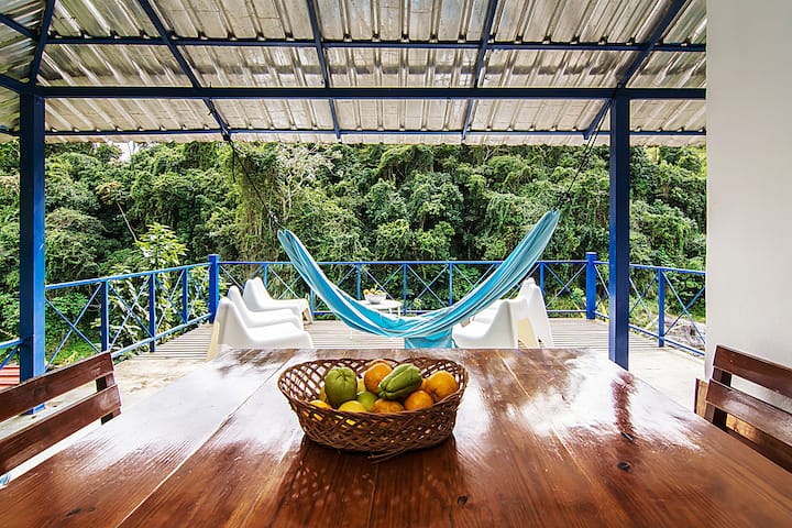 Maison bleue avec vue à 360° et rivière @villaclarard