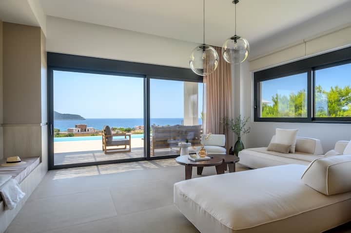 Nobus Villas - 1 : piscine privée, vue sur la mer et coucher de soleil