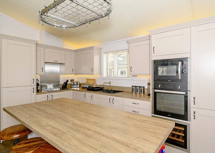 Ce gîte élégant-boutique dispose d'un lit double principal avec salle de douche attenante. Cuisine et salle à manger ouvertes. Portes menant à la terrasse. Pas d'animaux de compagnie.