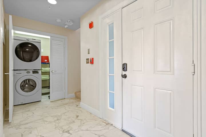 À l’intérieur, cette maison de ville respire l’élégance avec son mobilier contemporain, ses appareils en acier inoxydable et ses comptoirs en granit, assurant un mélange de style et de fonction. Le salon principal offre un espace confortable pour se détendre après une journée d'aventure, tandis que la cuisine ouverte et la salle à manger facilitent la préparation et la dégustation des repas. Avec des finitions haut de gamme et une décoration moderne, l'espace est à la fois chic et confortable, vous permettant de vous sentir comme chez vous. Rassemblez-vous autour de la table pour un dîner en famille, détendez-vous dans le salon spacieux avec un film, ou dirigez-vous vers la terrasse pour profiter de la vue sereine sur le terrain de golf en profitant de votre café du matin ou d'une boisson du soir. Chacune des trois chambres est soigneusement conçue pour offrir une retraite paisible. La suite parentale dispose d'un lit king size moelleux, d'une salle de bain attenante et d'un accès au balcon privé, parfait pour profiter de la vue avant de se coucher. La deuxième chambre comprend un lit queen confortable, et la troisième chambre est meublée avec deux lits jumeaux, offrant flexibilité et confort pour tous les invités. Des draps de haute qualité, un grand espace de rangement et une décoration de bon goût complètent chaque chambre, assurant une nuit de sommeil réparatrice.