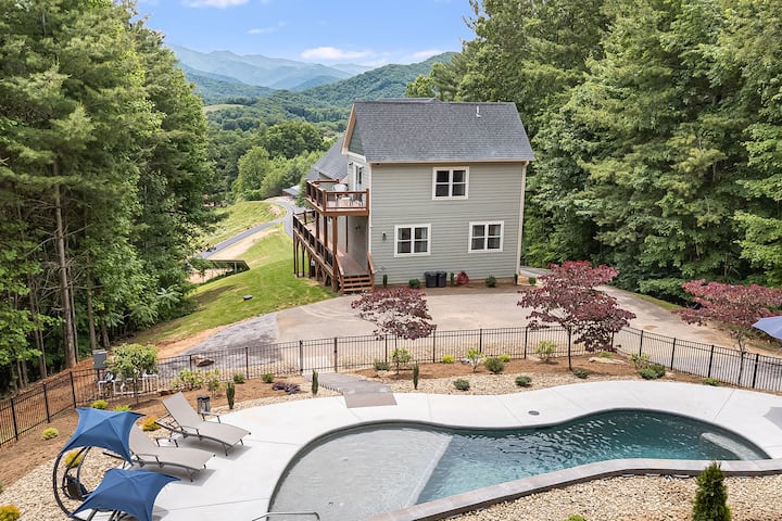 Une belle retraite dans les montagnes Blue Ridge vous attend dans cette cabane privée de 4 chambres et 3 salles de bain. Rénové à l'intérieur comme à l'extérieur. Vue dégagée sur le mont Mitchell depuis ses terrasses et son patio avec foyer. Détendez-vous près de la piscine creusée personnalisée, saisonnière, clôturée et chauffée. Piscine chauffée ouverte de fin mars à fin octobre. Renseignez-vous en dehors de cette période. Détendez-vous dans le spa ouvert toute l'année. Terrasse enveloppante fermée (idéale pour les jeunes enfants et les animaux de compagnie). Voir les photos et les commentaires