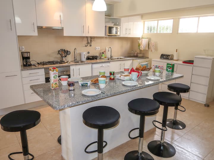 « Roy's place », appartement de 4 pièces de 113 m2 sur 2 niveaux, au rez-de-chaussée. Mobilier confortable et douillet : salon/salle à manger ouvert avec télévision numérique, radio, système hi-fi, climatisation et chauffage à air pulsé. Sortez sur terrasse.