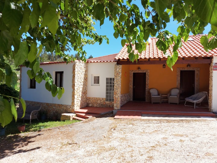 Ferme à Ribatejo, a 20 km de Santarém, capitale du Gothique. La maison d'hôtes, avec 60m2 et vues sur le verger et jardin, est prévue pour 3 ou 4 personnes, avec une chambre, salon avec coin repas et kitchenette, et salle de bain. Attenante à la maison d´hotes, il y a une deuxième chambre privée, indépendante et très confortable, avec salle de bain, pour une ou deux personnes plus. Les deux espaces disposent de la climatisation, Wi-Fi et Smart TV. Le propriétaire habite sur la propriété.