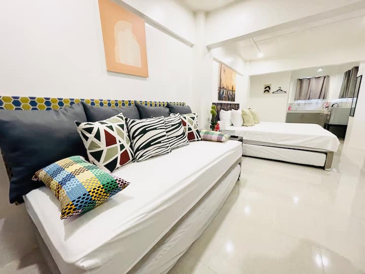 Chacune de nos quatre chambres peut accueillir jusqu'à six personnes, avec trois lits simples avec lits gigognes, assurant un sommeil réparateur pour tout le monde. Pour votre commodité, toutes les chambres sont équipées d'un mini-réfrigérateur, d'une bouilloire électrique, de toilettes et d'une baignoire avec bidet et douche chaude, de la climatisation, d'une télévision avec chaînes locales, d'un évier de cuisine, d'une table à manger et de chaises.