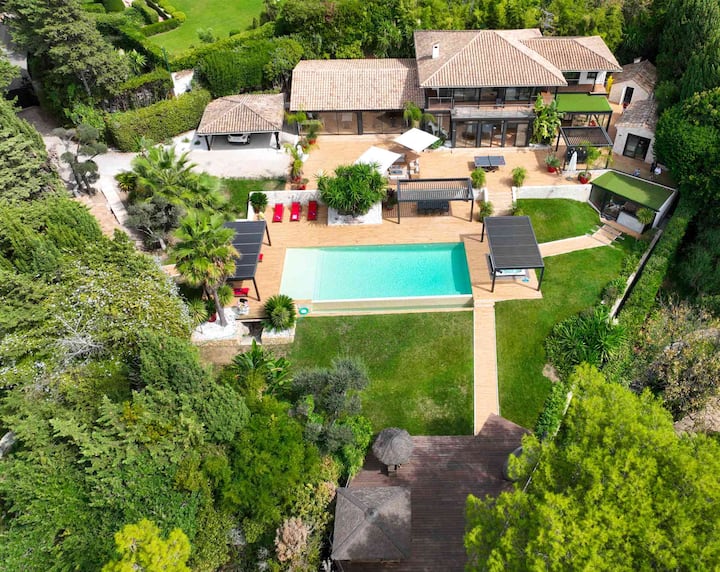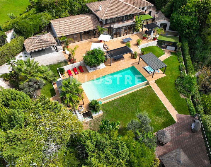 Cette propriété d'exception de 2850 m², lovée dans un écrin de verdure tropical, offre une expérience de séjour unique à seulement quelques minutes du cœur vibrant de Cannes et des plages légendaires de la Croisette.