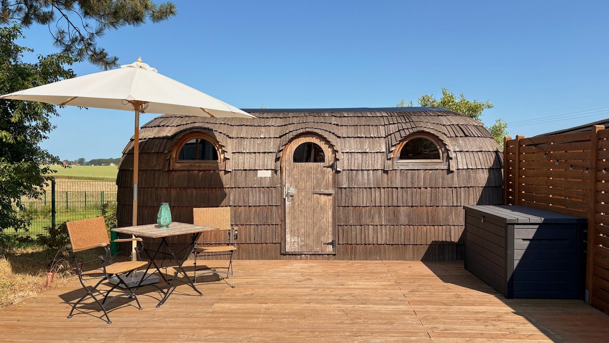 Le chapeau igloo de haute qualité fabriqué à la main est fabriqué avec une attention aux détails en bois naturel. Le design unique du chapeau igloo nordique allie nature, élégance et artisanat en un. Avec des siècles de technique de bardeaux, il est fabriqué à l'extérieur avec du bois d'épicéa scandinave et équipé à l'intérieur de manière moderne avec du bois de tremble. Grâce au design rustique de la Tiny House, vous passerez un séjour confortable et chaleureux.