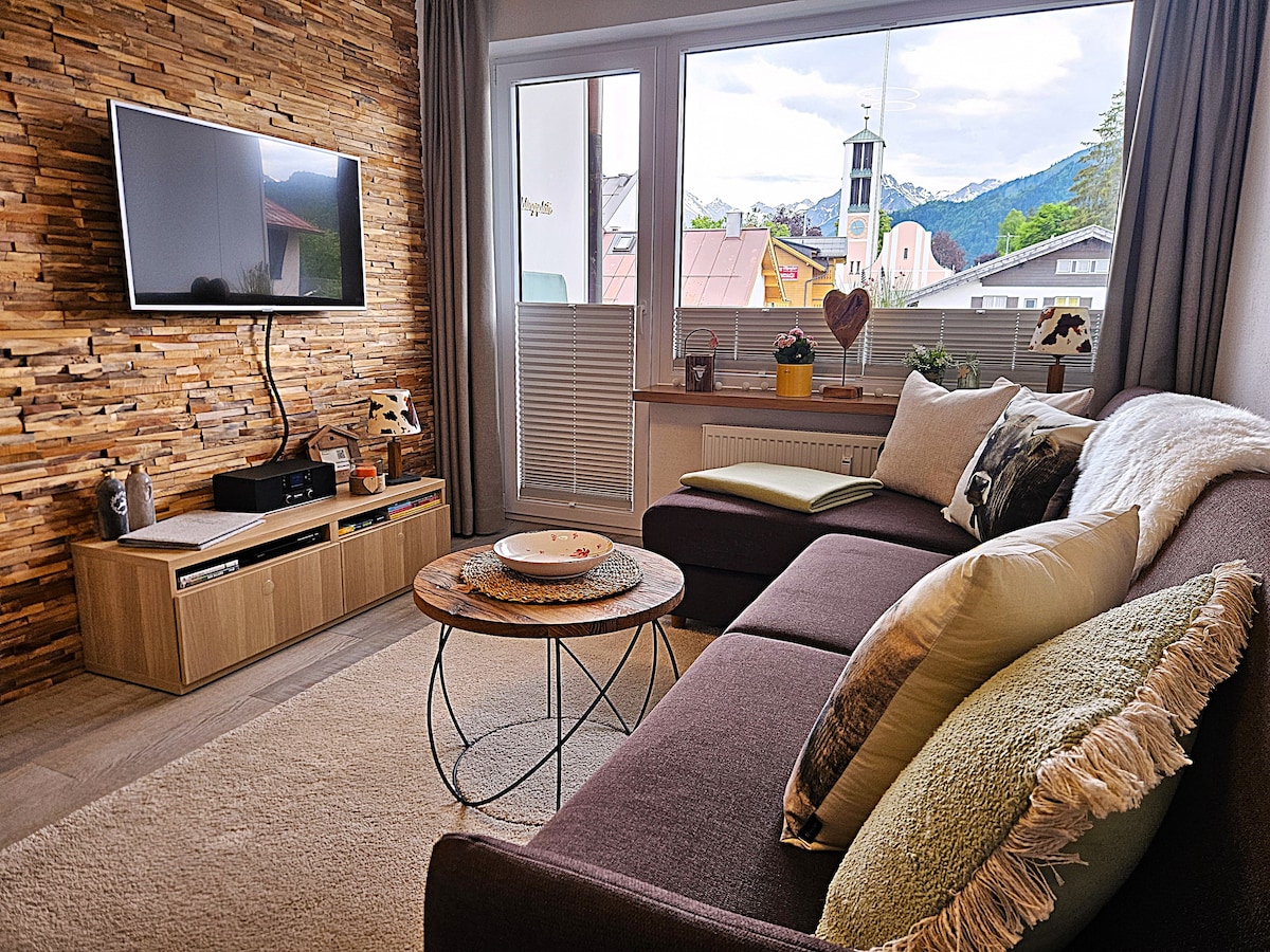 L'appartement de 50 m² a été aménagé avec beaucoup d'amour du détail. Le salon principal dispose d'une cuisine entièrement équipée, d'un coin repas et d'un canapé-lit. La chambre et la salle de bain sont séparées du séjour. À l'extérieur, une terrasse avec vue sur les montagnes. La maison est située dans un quartier calme, à environ 10 minutes à pied du village, à 3 minutes du stade de saut à ski et à 7 minutes du remonte-pente de Nebelhorn. Il y a assez de place pour les skis, les vélos, etc.