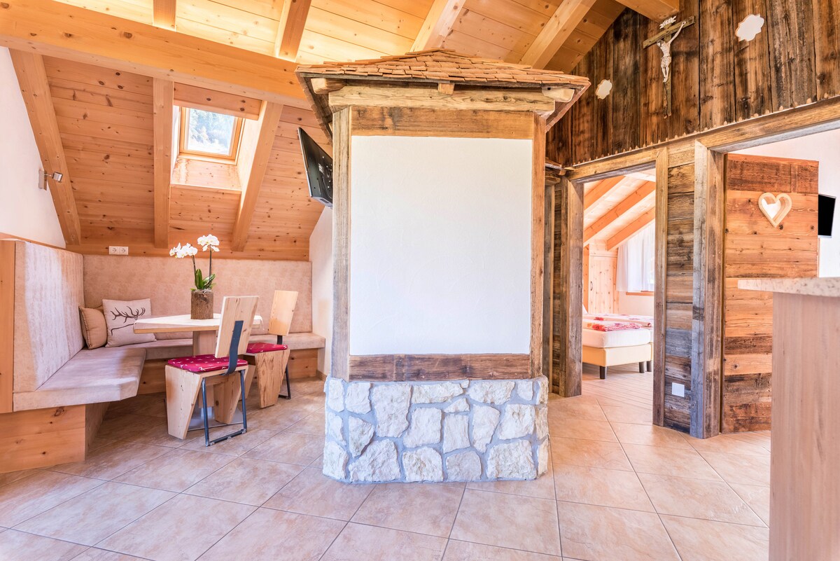 Accogliente studio per 2 persone nelle Dolomiti, a pochi passi dalle piste da sci. Perfetto per coppie in cerca di relax e avventura, offre comfort moderno e un’atmosfera romantica con vista sulle montagne e sul paese di San Vigilio. La posizione ideale ti permette di vivere la magia delle Dolomiti direttamente fuori casa.