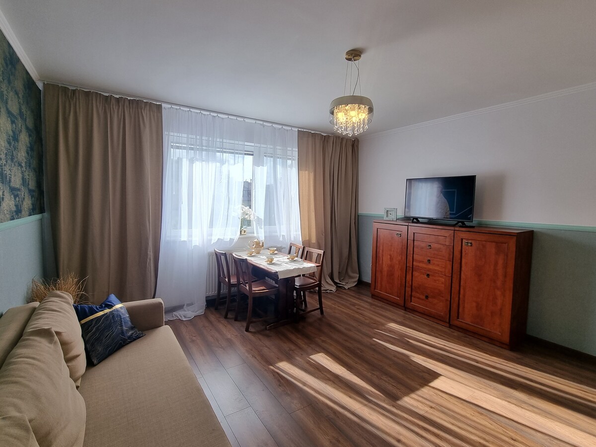 Nowoczesne mieszkanie o wysokim standardzie, idealne dla par (maksymalnie 2 osoby). Blisko centrum, z bardzo dobrą komunikacją – w bezpośrednim sąsiedztwie znajdują się przystanki autobusowe i tramwajowe. Mieszkanie znajduje się w budynku z lat 70-tych, położonym w spokojnej dzielnicy mieszkaniowej, w odległości około 1,5 km spacerem od Starego Miasta. Lokal usytuowany jest na drugim piętrze budynku wyposażonego w windę. W okolicy dostępnych jest wiele bezpłatnych miejsc parkingowych.