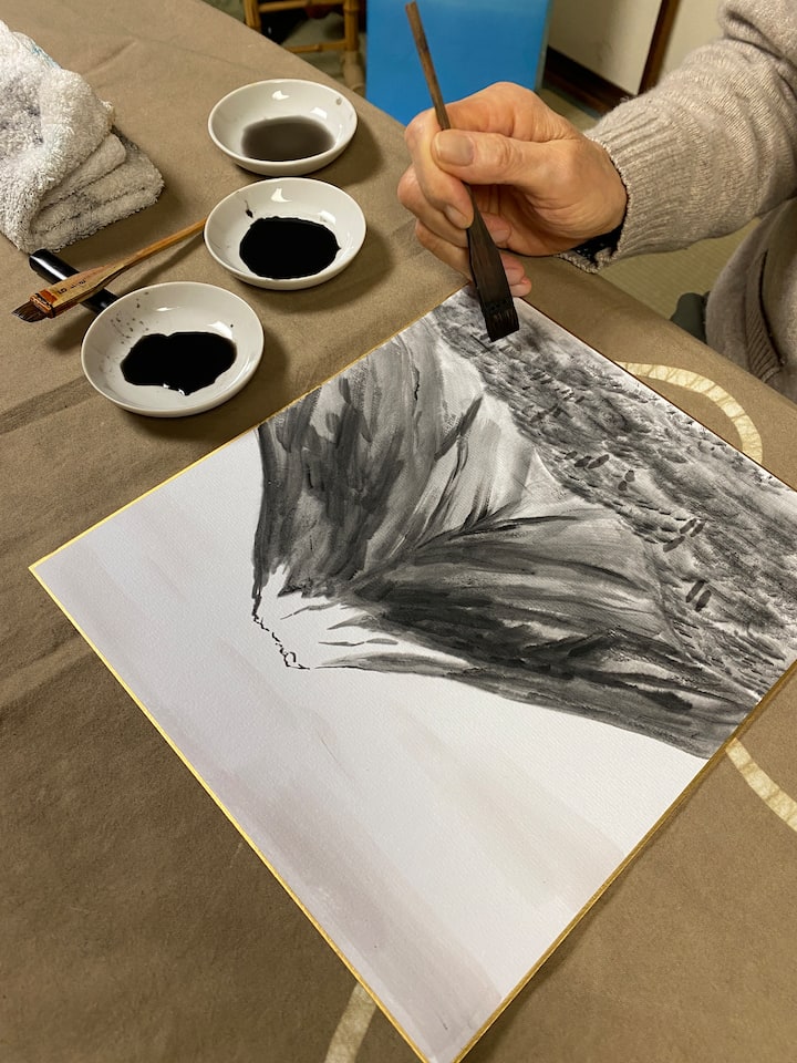 マイスター千佳とアーティスト愛:多彩な経験を『今の感性』に集約して描く、贅沢な心の墨絵体験