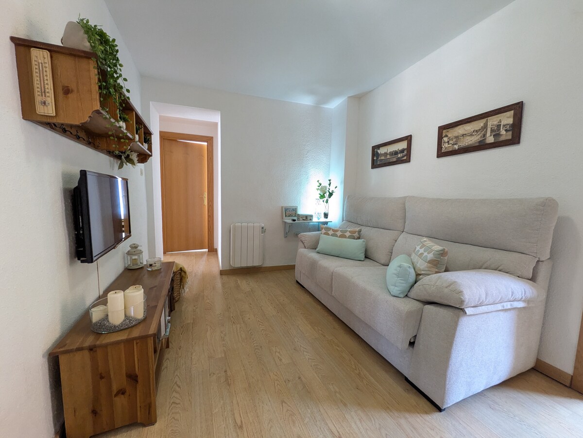 Appartement accueillant pour profiter d'un séjour tranquille et confortable à Calatayud pour 4 à 6 personnes. ACCEPTE LES ANIMAUX DOMESTIQUES. Chambre avec un lit double. Chambre avec deux lits simples. Canapé-lit dans le salon. Cuisine entièrement équipée avec four, micro-ondes, cafetière et tout ce qu'il faut pour cuisiner comme chez soi. Lave-linge, Wi-Fi, linge de lit et serviettes inclus. Idéal pour les familles qui souhaitent découvrir la richesse culturelle de cette région aragonaise.