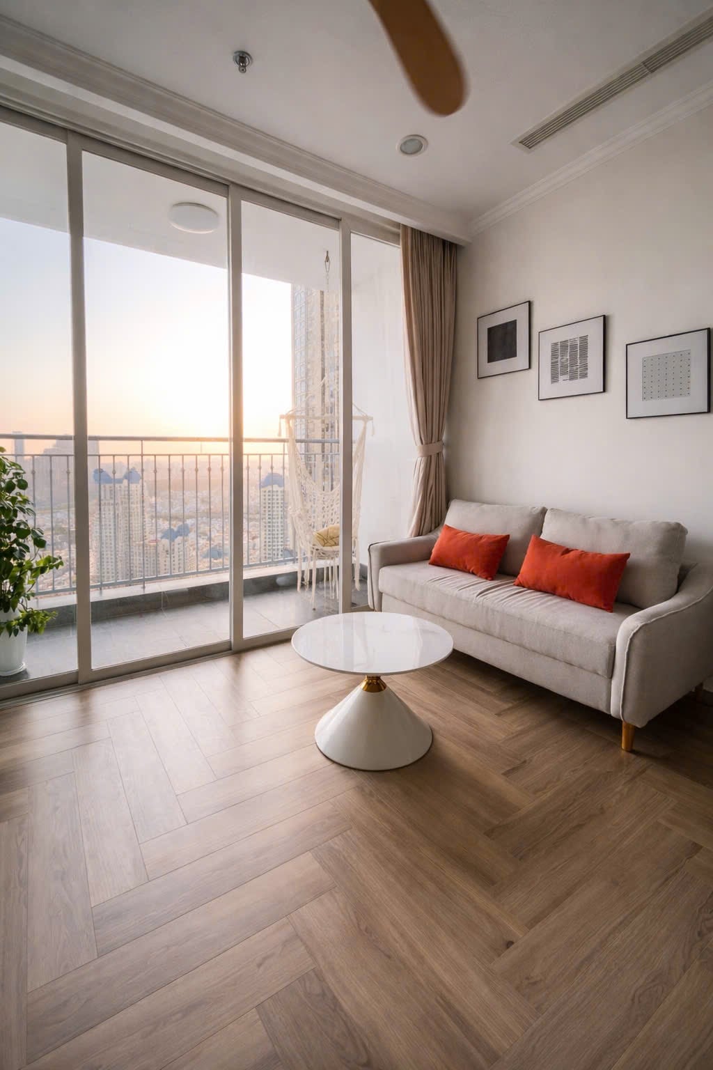 Chỗ ở đặc biệt này gần với mọi địa điểm, giúp bạn dễ dàng lên kế hoạch cho chuyến tham quan của mình. Đi đâu cũng gần khi gia đình bạn ở tại địa điểm nằm tại vị trí trung tâm này - nằm sát bên Landmark 81. Căn hộ 2 phòng ngủ nằm ở tầng 34, rộng rãi thoáng mát, view thành phố rất lý tưởng ngắm cảnh về đêm và ngắm pháo hoa vào những dịp lễ. Căn hộ thiết kế tinh tế theo phong cách phong cách chủ đạo là Scandinavian (Bắc Âu), nhưng có pha trộn nhẹ với Modern (hiện đại) và một chút Japandi.