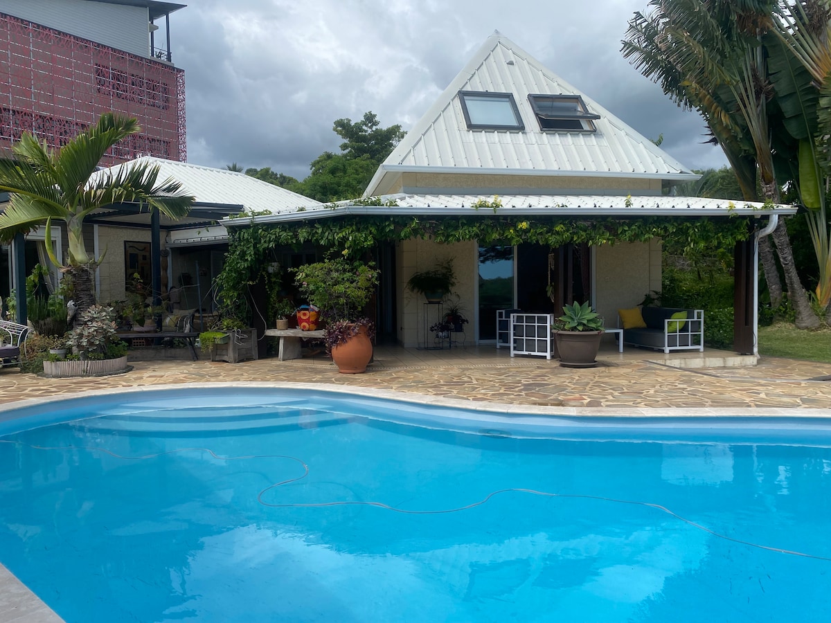 maison individuelle , classée 3 étoiles , avec vue sur l'Océan Indien , située dans un grand parc de 10500 m2 à 350m d'altitude = température idéale . La situation est idéale pour de nombreuses randonnées à proximité ( Le Maïdo , le cirque de Mafate , Le Grand Bénare....) à 10 mn du fameux marché de ST PAUL, à 15 mn des plus belles plages de la Réunion , supérette et boulangerie à 5 mn . Sites culturels : musée , temples tamouls . Golf , parapente , luge sur gazon, VTT, accrobranche.....